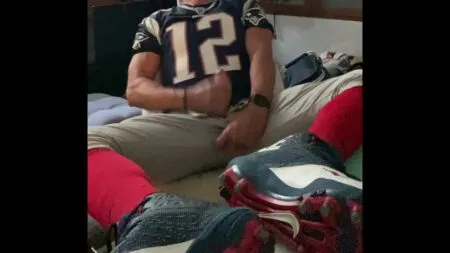 I was horned up after playing football, so I stayed in my gear and started edging my big cock.