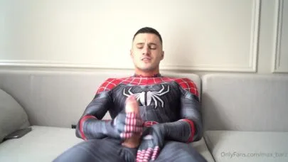Watch Max Barz jerking in a Spiderman costume solo